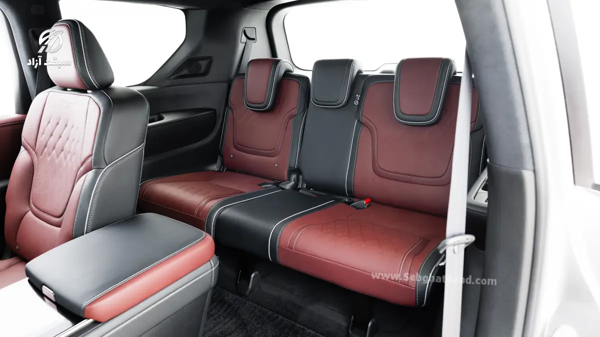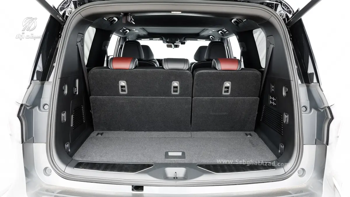 کابین QX80 جدید با فضایی آرام، صندلیهای راحت و مواد اولیه مرغوب طراحی شده است. فضای داخلی نمونه تستی با ترکیب قرمز شرابی و مشکی، تزئینات فلزی و چوب درخت زبانگنجشک با برش لیزری تکمیل شده است. صندلیهای جلو و ردیف دوم مجهز به گرمکن، سردکن و ماساژور هستند، در حالی که ردیف سوم تنها گرمکن دارد اما راحتی مطلوبی برای سرنشینان فراهم میکند.