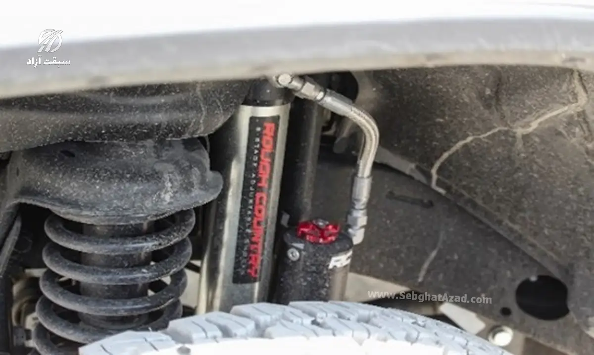 جیپ رانگلر روبیکان ۳۹۲ از سیستم تعلیق چنداتصالی (Multi-Link) با محورهای Live Axle بهره میبرد و فنربندی آن قابلیت تنظیم در هشت حالت مختلف دارد. راننده میتواند با چرخاندن یک پیچ مخصوص، میزان نرمی یا سختی کمکفنرهای Rough Country B-Stage را تغییر دهد. این ویژگی امکان تنظیم سواری از حالت نرم و راحت تا اسپرت و سفت را فراهم میکند.