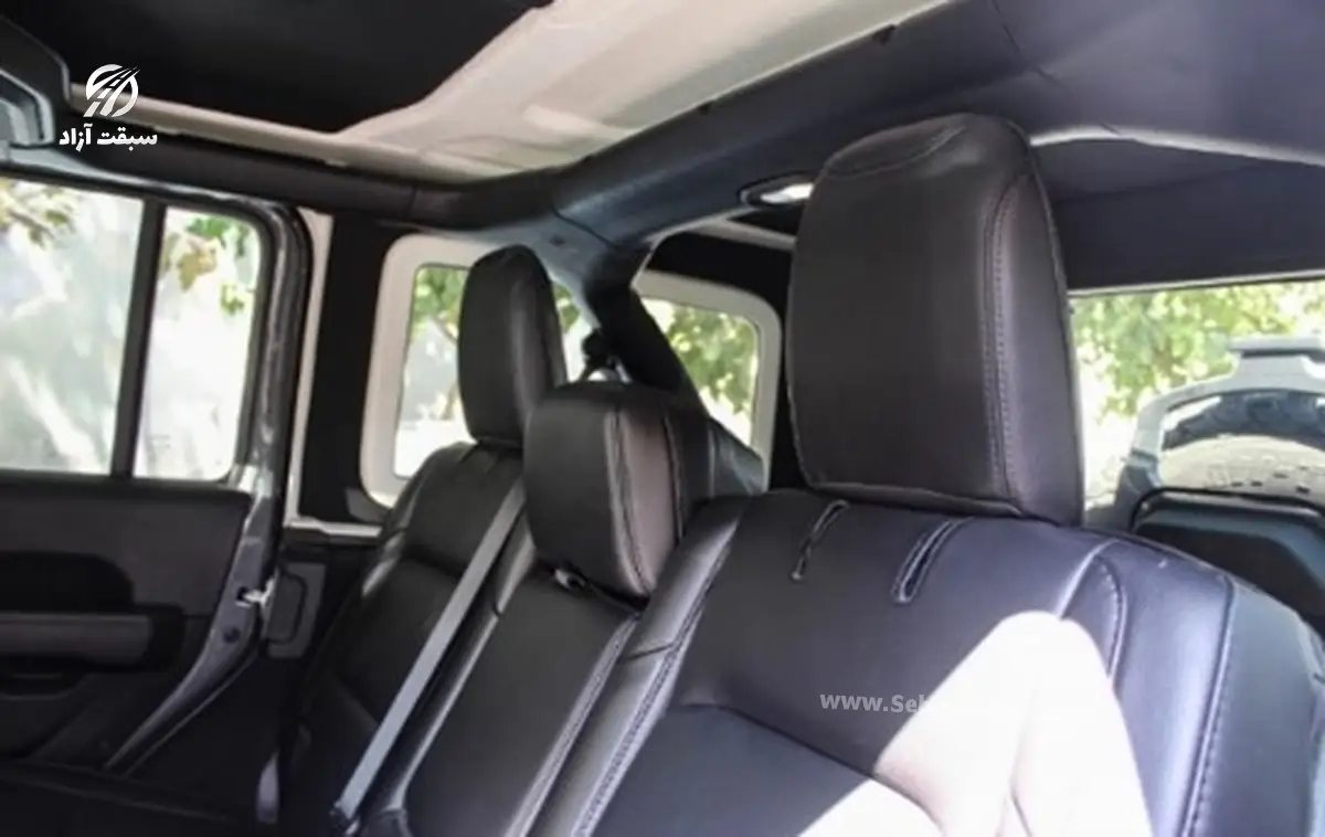 کاپوت محدب با دریچه تهویه مرکزی ظاهری اسپرت ایجاد کرده و گلگیرهای عضلانی برجسته به همراه لاستیکهای حجیم، حس قدرت و ماجراجویی را تقویت میکنند. در عقب، چراغهای چهارگوش و چرخ زاپاس بزرگ به هویت کلاسیک جیپ وفادار ماندهاند.