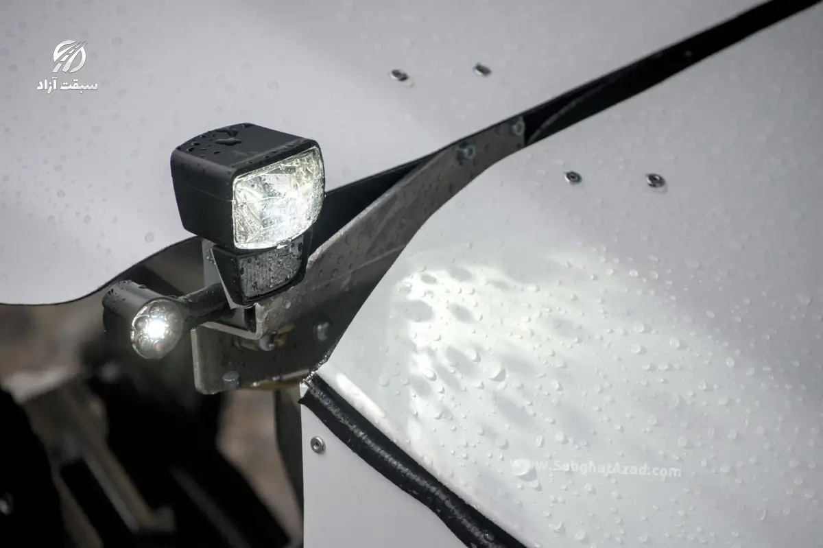 از نظر ایمنی، ترمزهای دیسکی هیدرولیکی در هر سه چرخ با روتور 180 میلیمتری به همراه یک ترمز دستی تعبیه شدهاند. چراغ LED جلو، چراغهای عقب، راهنما، گلگیر کامل، سبد بار عقب، آینه دید عقب و قفل، همگی بهصورت استاندارد عرضه میشوند. ظرفیت حمل بار و سرنشین نیز تا 249.5 کیلوگرم است.