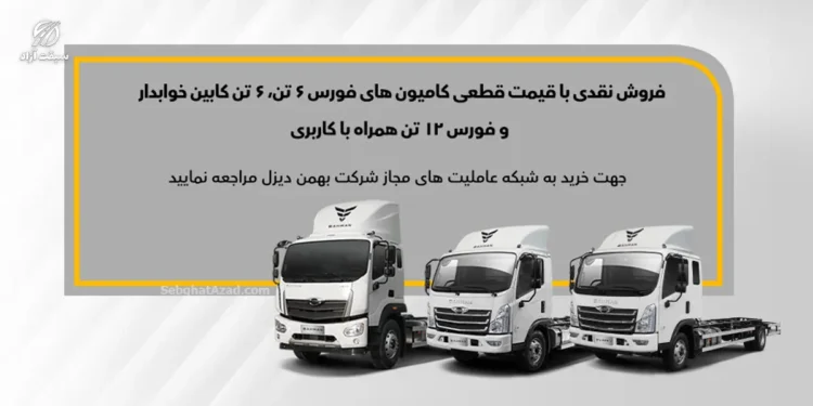 شرکت بهمن دیزل طرح فروش نقدی کامیونهای فورس 6 و 12 تن را برگزار میکند.