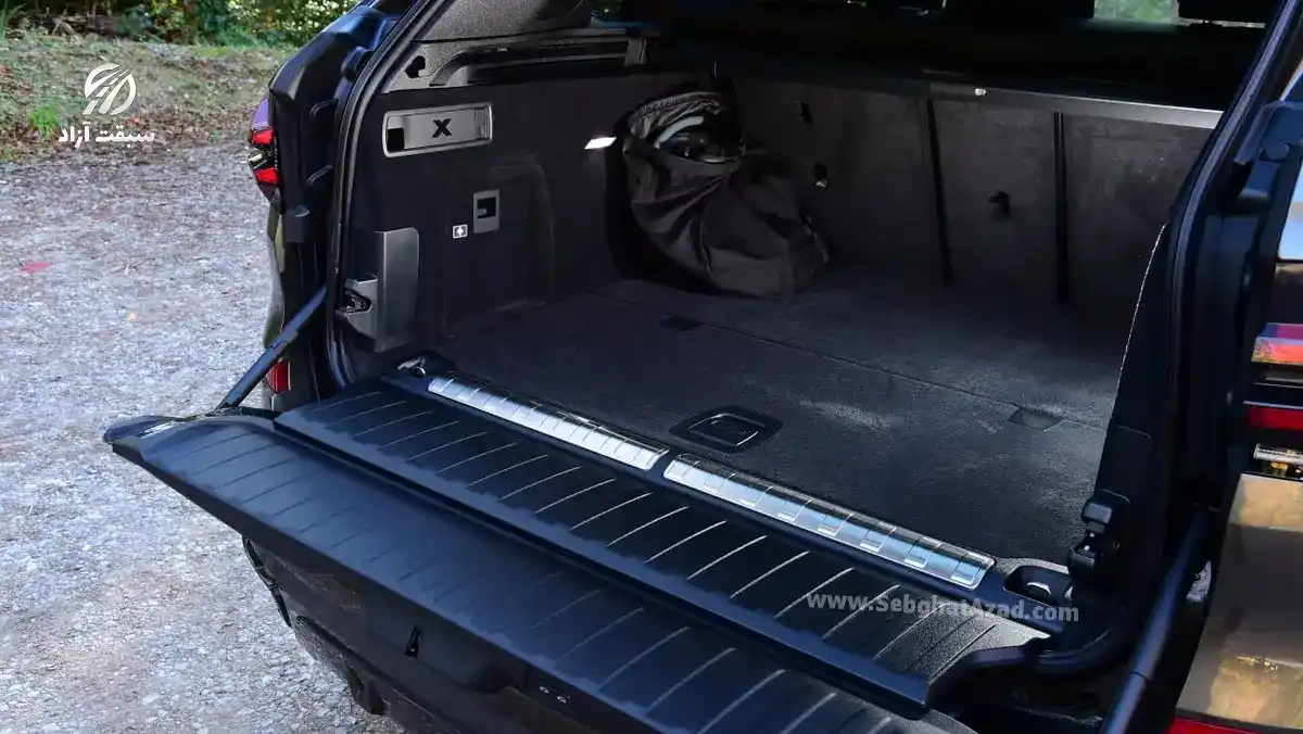 صندلیهای عقب بهصورت کامل تاشو هستند، ولی حجم بار کاین (1563 لیتر) نسبت به X5 (1720 لیتر) کمتر است.
